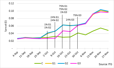 Chart 3: Weekly trends in spread (September 4 – December 2)