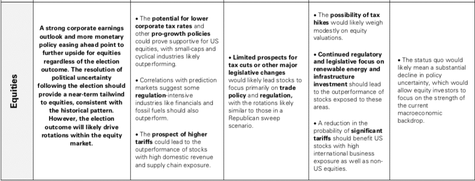 Under a second Trump administration, Goldman Sachs also expects an easier regulatory climate for several sectors including energy, antitrust enforcement and healthcare.
