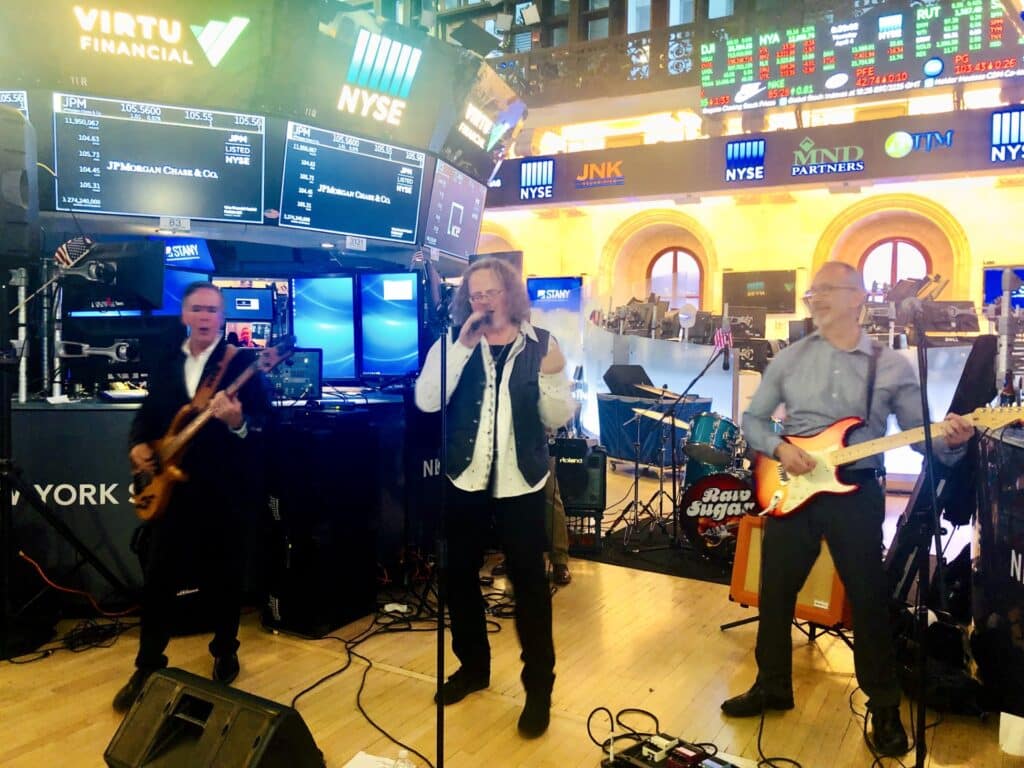 One of my favorite shows was when we played the NYSE trading floor during a STANY event. I was upstairs on a panel, then ran downstairs, changed into my outfit, and played the set. I’ll never forget that one.