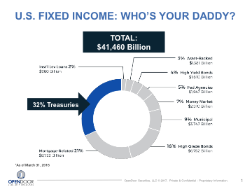 There is one part of the debt market, however, where the complexities are different and one that produces a nearly incomprehensible amount of data daily. I am, of course, speaking of the U.S. Treasury market, which by volume makes up about 32% of the total domestic debt pie (slide 1).
