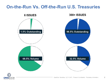 The six OTR benchmark issues represent just 1.5% of total outstanding Treasury issuance, yet they generate over 68% of total trading volume.